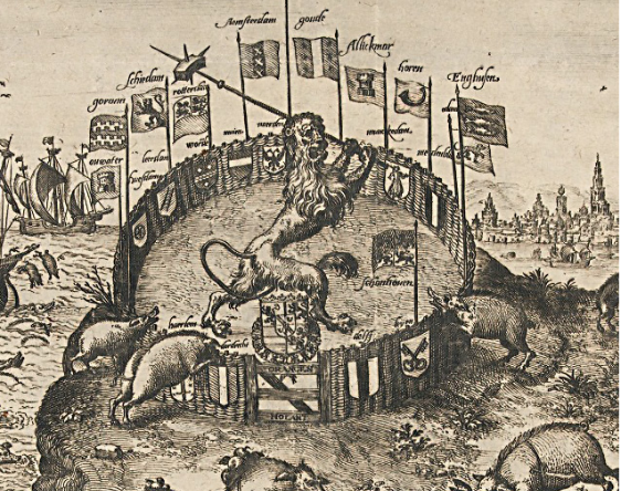 Гравюра 1580 года показывает, как нидерландцы были напуганы испанским вторжением, изображенным как нашествие свиней. Лев является символом Нидерландов