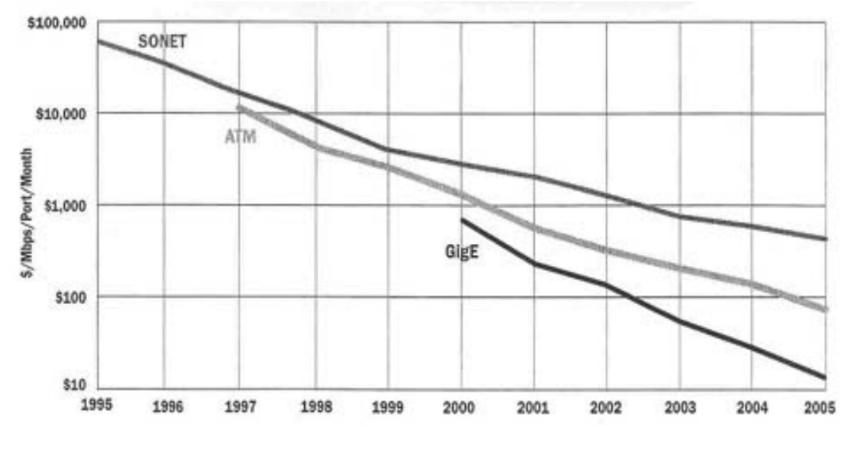 Цена интернет-соединения со скоростью 1 Мбит/с упала на 99% за 20 лет: с $100 000 до менее чем $10 (на 99,99% — Прим. пер.).